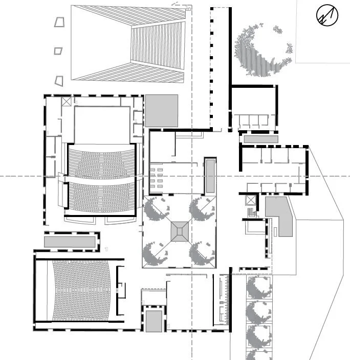Drawing from the traditional African architecture, the complex revolves around a courtyard, where all activities permeate into the outdoor open space. Ponds adjacent to the exterior walls allow for the evaporation and cooling of the outdoor pedestrian area.