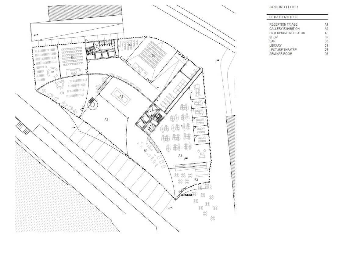 The UAL building is conceived as a vertical campus, an urban node, at the gateway of the Queen Elizabeth Olympic Park, augmenting the link between the city and nature. Shared activities found in surprising openings and atriums between the various programs enhance the perception of the totality of the building, creating a strong sense of belonging in the UAL community.