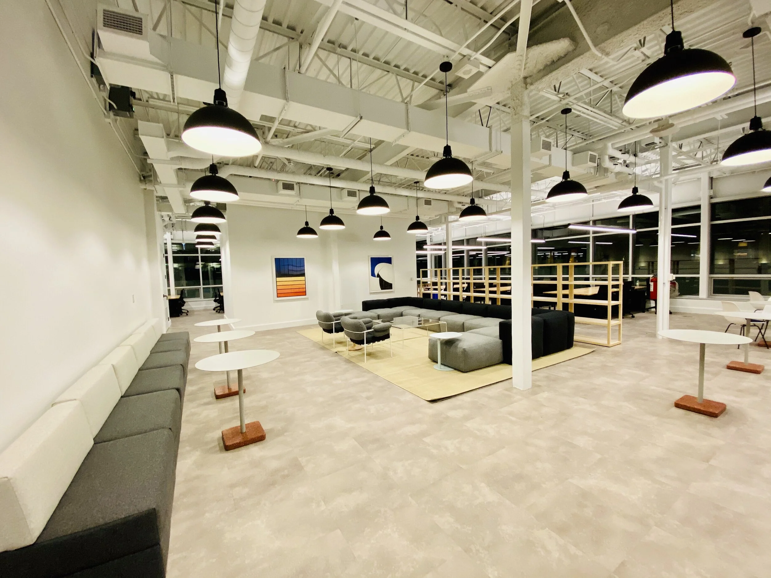 This project comprised of gut renovating two full floors in a historic Montreal office building. Some initial challenges were to bring the floors up to code, considering the increased density our design required on each floor. The raised floor system posed additional challenges, both in the areas of the enhanced underfloor air distribution and the finishes we planned to use on the floors. The suspended ceilings were removed in order to take advantage of the full height on these floors, requiring a new layout for the FCUs in conjunction with the proposed partition layouts. All lighting fixtures and furniture were shipped from the United States, which posed some challenges at the customs, and precursored a new strategy to source locally in subsequent Canadian projects.